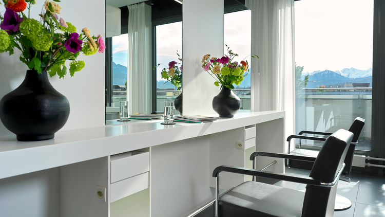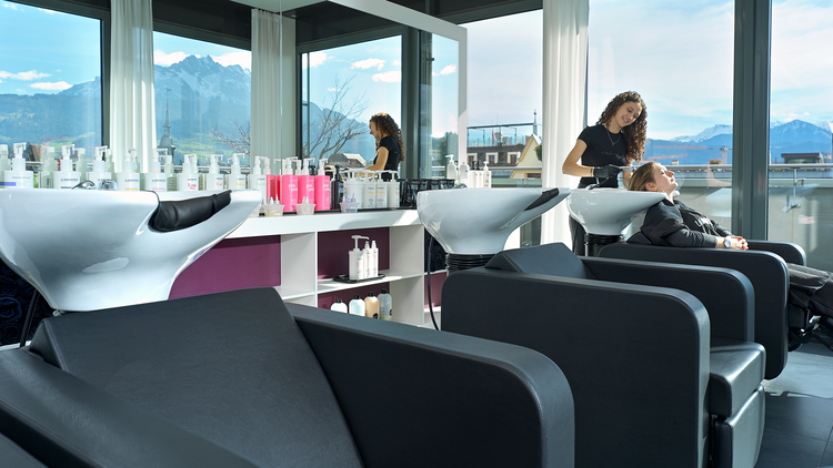 Im 6. Stock gelegen, bietet unser Salon in Luzern nicht nur erstklassigen Service, sondern auch eine atemberaubende Aussicht auf die Alpenkette.